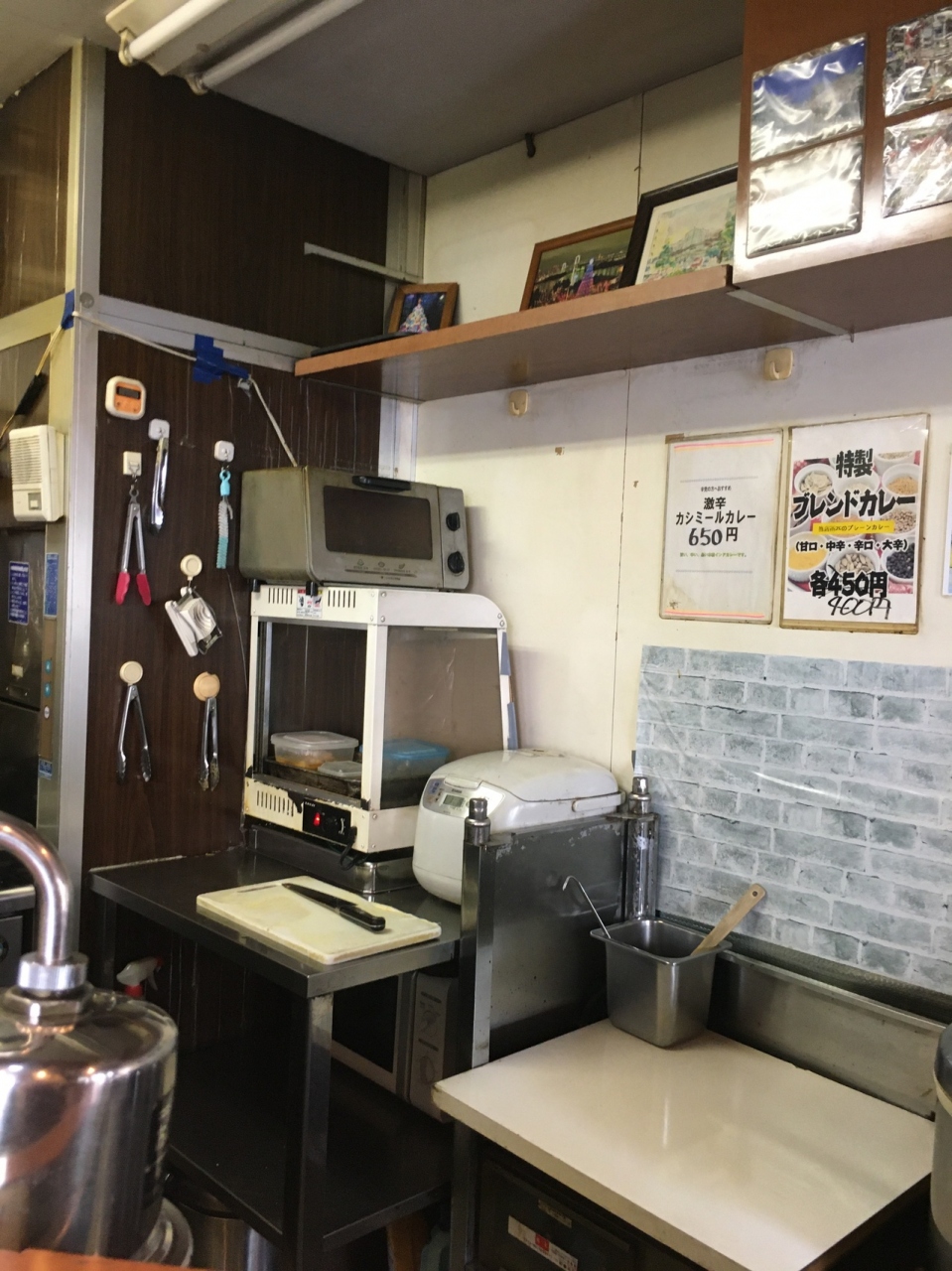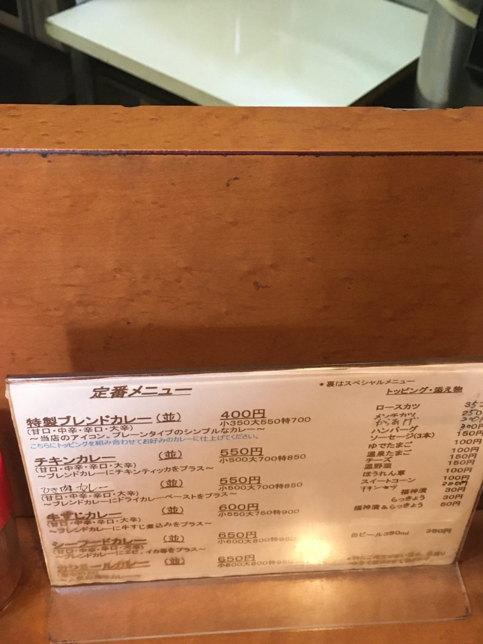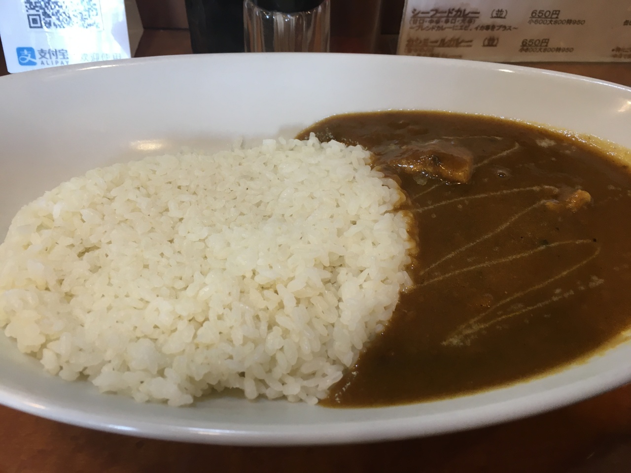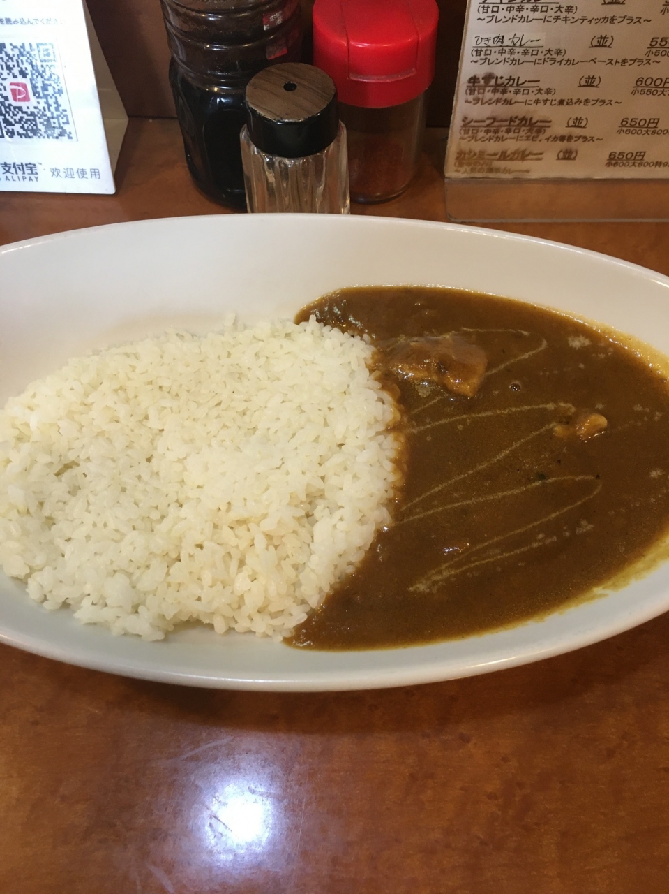 1回は5席程しか石碑がなかったですが、2階へ上がる階段もありました。現金の他PayPayでも支払いが出来ます。辛さを選ぶことが出来、チキンカレーの甘口を食べました。ミルクが少々入っているような感じでマイルドな味わいでチキンが柔らかく旨かったです。