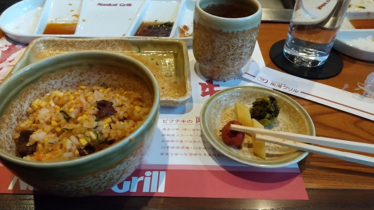 母の卒寿の祝いに極上ランチを食べにやってきた。阪堺電車の通っている大道筋の花田口駅前の交差点を東から西に過ぎると右側に合掌造りの建物が見えるが、これが南海グリル中店だ。花田口駅前交差点の次を右折したら、少し入りにくいが又すぐに左の門を入る、そうすると右側に駐車場があり、中店の近くに停めることができる。車を右斜め向きに前進駐車するので、もしさっきの入り口を過ごして次で入ると、車の向きが反対になり、後進駐車となってしまい、出にくくなる。先ほど右折して入ってきた道は北行き一方通行なので、帰りは西側から出て左折して南向きで出た方が出やすい。土曜日の12時に予約を入れていた。予約の名前を告げて、全員揃っていないというと、中二階の応接室に通された。妻は膝が悪いので階段を上るのに苦労した。直に妹と母が到着し、12時10分に鉄板のあるテーブルに案内された。鉄板の正面に3名、両端に2名の5人掛けだった。最初にスープをコーンポタージュか、カボチャポタージュかを個別に聞かれた。12時15分、前菜はクラッカーにパテを乗せたカナッペとビアソーセージと野菜。12時25分、銅の小鍋にスープを入れてて鉄板で熱々に熱して供された。カボチャが甘くて旨いが、ちょっと熱すぎる。4つに区切られたさらに、揚げニンニク、ポン酢、甘いステーキソース、塩が載せられて各自の前に置かれた。極上ランチは本日の極上牛肉120gがメインだ。焼き方を聞かれるが、鉄板があり、いくらでも追加で焼けるので「レア」でお願いした。ただ、目の前の鉄板で自分で追加で焼けると思っていたが、この鉄板は中央以外は熱くないらしい。でも必要なら追加で焼かせていただきますと言ってくれたが、実際にはレアでちょうど良かった。最初に脂身の多いロースを焼いてくれた。ステーキは典範の上に置いたトーストに乗せて供される。極上の宮崎牛は柔らかいが柔らかすぎることなく、適度の噛み心地で旨い。脂身の部分は切り出して、よく脂を出してから後の焼き飯に使ってくれる。12時40分サラダが来た。量が多くて美味しいサラダだ。ドレッシングはごまと人参ベースの二種類から選べる。続いて赤身牛肉と焼いてくれた。こちらも極上の名にふさわしい旨さだ。12時46分、レンコンとサツマイモを焼いて出してくれた。12時55分、先ほどステーキを置いたトーストをたっぷりの溶かしバターで浸して焼いてくれた、ちょっと家庭でやると叱られそうな量のバターだ。最後にご飯になるが、ピラフorお茶漬けor茶そばから選べる。メニューにはピラフとあるが、実態は炒飯で、以前から気になっていたところだ、私たちを担当してくれたシェフも炒飯と言ったし、時々クレームがあるのだという。ピラフと炒飯は全くの別物だから改善してほしい。ご飯には梅干し、お新香と緑色の漬物(すぐきか?)が付く。13時20分、デザートと飲み物は地下の喫茶室に移動してから供される。デザートはバニラアイスと文旦シャーベットから選ぶが、どちらも大したものではない。飲み物はコーヒー、紅茶等から選べる。問題は子の喫茶室が地下にあり、階段を降りなければならないこと、さらに階段を下りて向きを変えた直後に段差があり、最初に降りたときは気を付けるように言ってくれるが、母が一階のトイレに行って帰ってきたときにこの段差に気づかず転んでしまった。明かりが暗いので気づきにくいのだ。91歳なのケガを心配したが、なんともなくてよかった。下手をしたら損害賠償請求をしなければならないところだった。ランチは極上だが、このバリアフルな構想は時代遅れも甚だしい。早急の改善が必要だと思う。14時15分、食事には満足して店を後にした。支払いにはGOTOEATの食券が使えた。