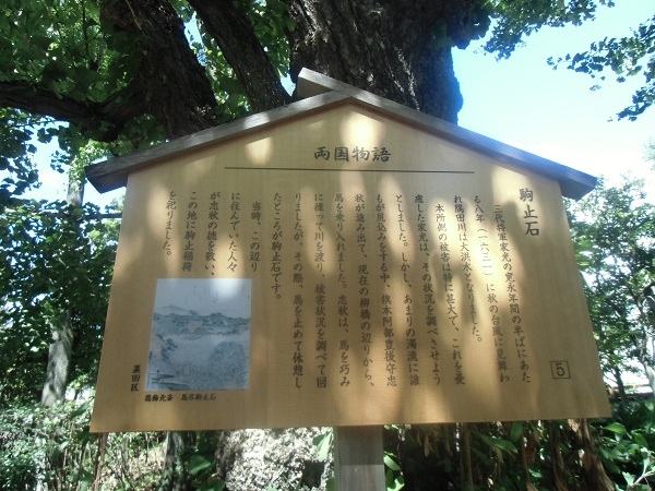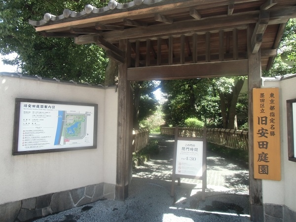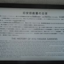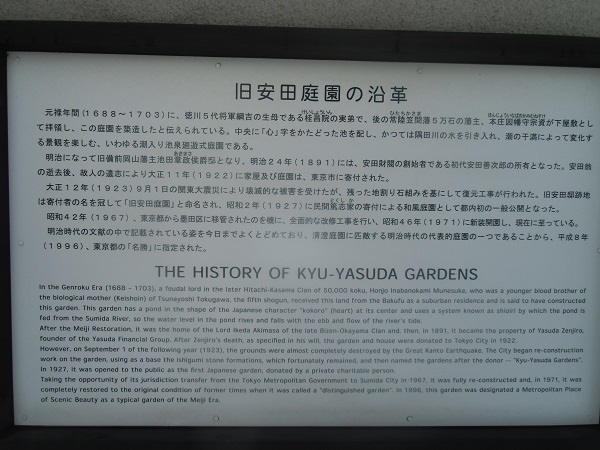 説明板によると、元禄年間(1688~1703)に、五代将軍の徳川綱吉の生母である桂昌院の実弟が、後の常陸笠間藩5万石の藩主、本庄因幡守宗資が下屋敷として拝領し、この庭園を築造したと伝えられています。