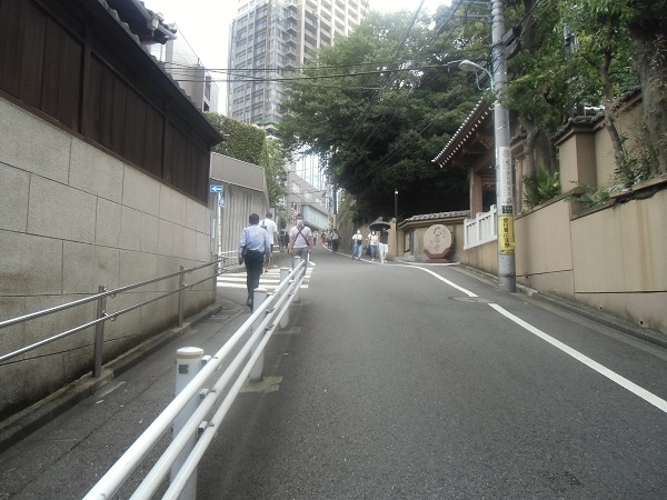目黒駅正面口から西へ約40mのところから、南西へ約200m、目黒雅叙園の入り口付近まで下っていく坂です。