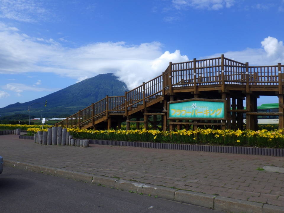 道の駅「真狩フラワーセンター」のすぐ近く、道道66号、まっかりフラワーロード沿いに「フラワーパーキング (展望台)」がありました。この辺りには道路沿い黄色の百合が植えられていて、展望台からは黄色い百合越しに羊蹄山が綺麗に見えました。