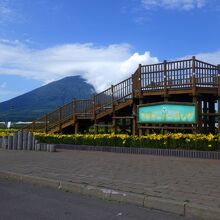 展望台からは黄色い百合越しに羊蹄山が綺麗に見えました