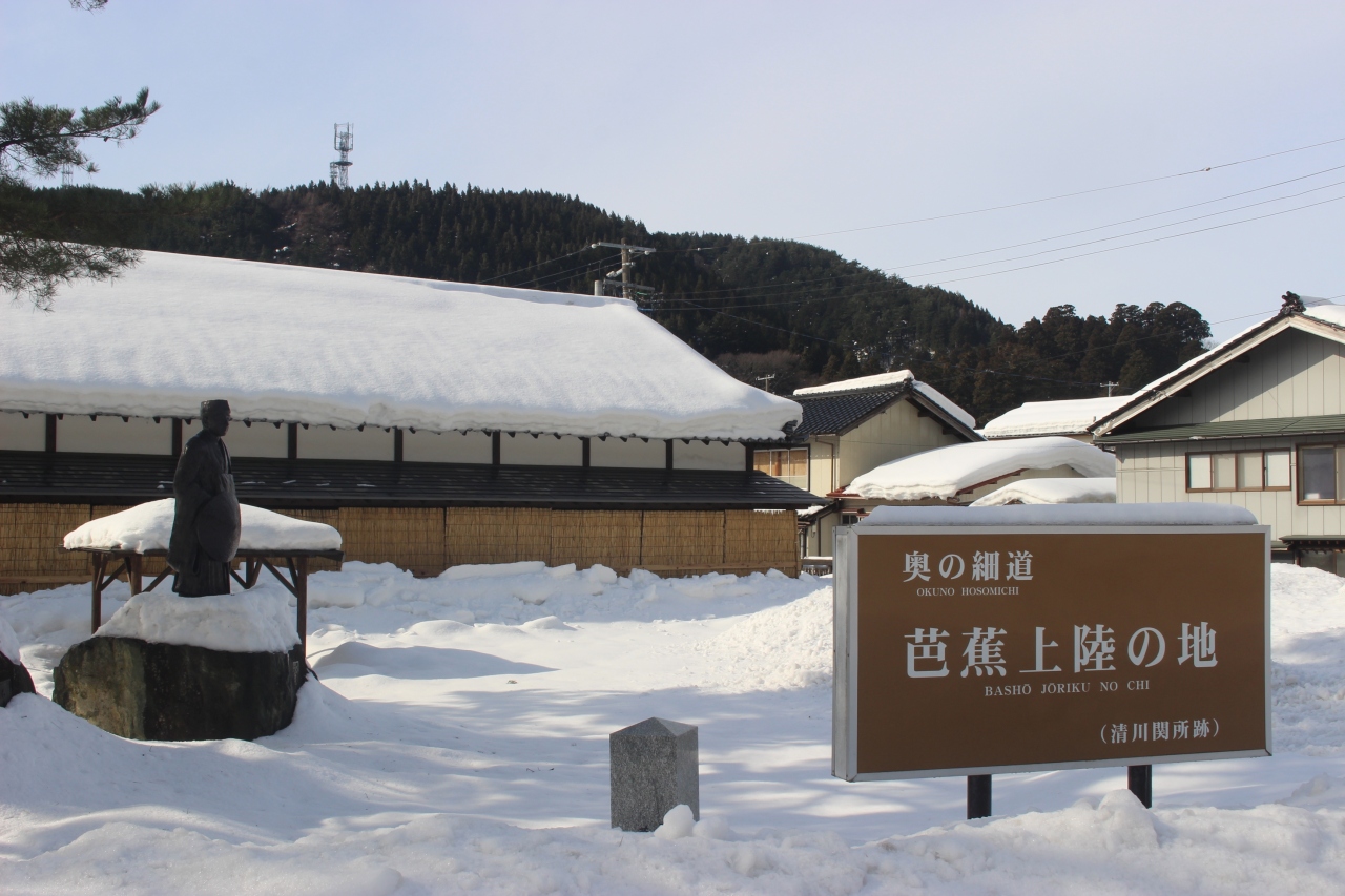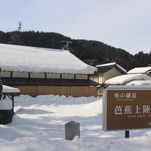 松尾芭蕉もここで最上川から上陸したようで、上陸の地の看板と松尾芭蕉の銅像がありました。