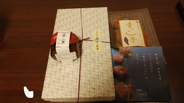 バスの時間が十分にあったのでお土産調達を兼ねて中へ。特産とは知らなかったが、地場産の干し芋を使っているようだ。干し芋はやわらかく、風味も良かった。そのほか芋蜜など、珍しい商品を購入することができた。