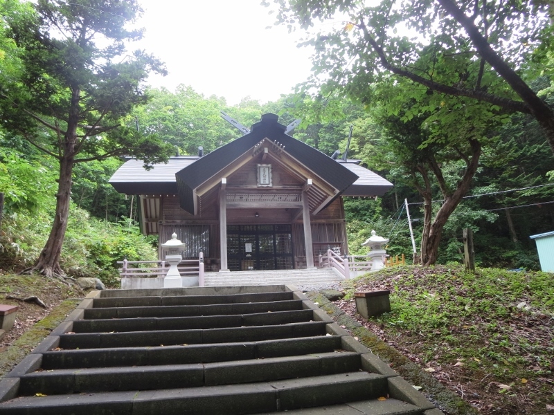豊富温泉に泊まった帰りに、豊富駅に行く途中に見つけてお参りしました。階段を登って行くルートと坂道がありました。荷物を引いて坂道を登ると、小さな社がありました。誰もいなくて静かな境内でした。豊富地域を見守っているような雰囲気でした。