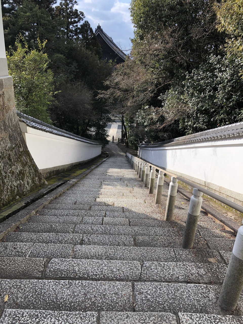 御影堂の横から階段があります。けっこうきつい階段ですが、上ったところには知恩院内で一番古い建物の勢至堂や、法然上人の御廟などがあるので、行ってみる価値はあると思います。方丈・方丈庭園の見学(有料)のあとだと、この階段を下りるのが順路になります。