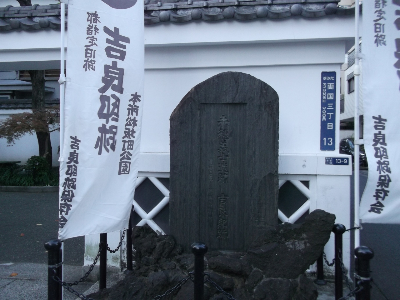 JR両国駅からは歩いて7分ほど、本所松坂町公園にある吉良上野介屋敷跡です。今ある公園自体はとても小さく、かつての吉良邸のほんの一部にしか過ぎません。敷地内には上野介の像や首洗いの井戸など、ゆかりのものがあります。