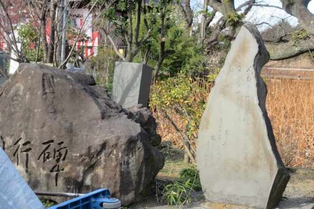 上野の不忍池の弁天堂に行った際に見つけたものですが、場所は橋を渡って比較的すぐの場所なので、わかりやすいですが、屋台のお店の荷物などが碑文の手前にあったので、ちょっと見にくかったです。石碑と歌碑がセットになっているので、なかなか立派。絵や歌を詠んだ昭和初期の方だそうです。