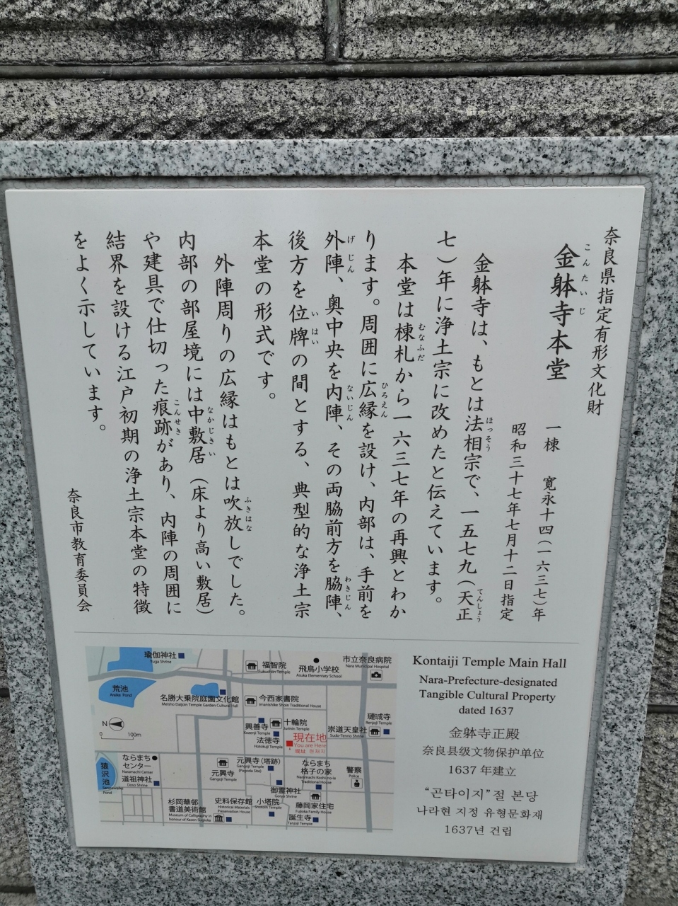 ならまちエリアの南東部のお寺が密集するエリアにあります。元興寺(飛鳥寺)の道昭法師が唐から帰ってきた際に開基した寺院であるという言い伝えもある伝統のある浄土宗のお寺です。普段は地味な感じですが、2月には釈迦八相涅槃図という動物を描いたものが公開されるので、時期が合えば見たいですね。