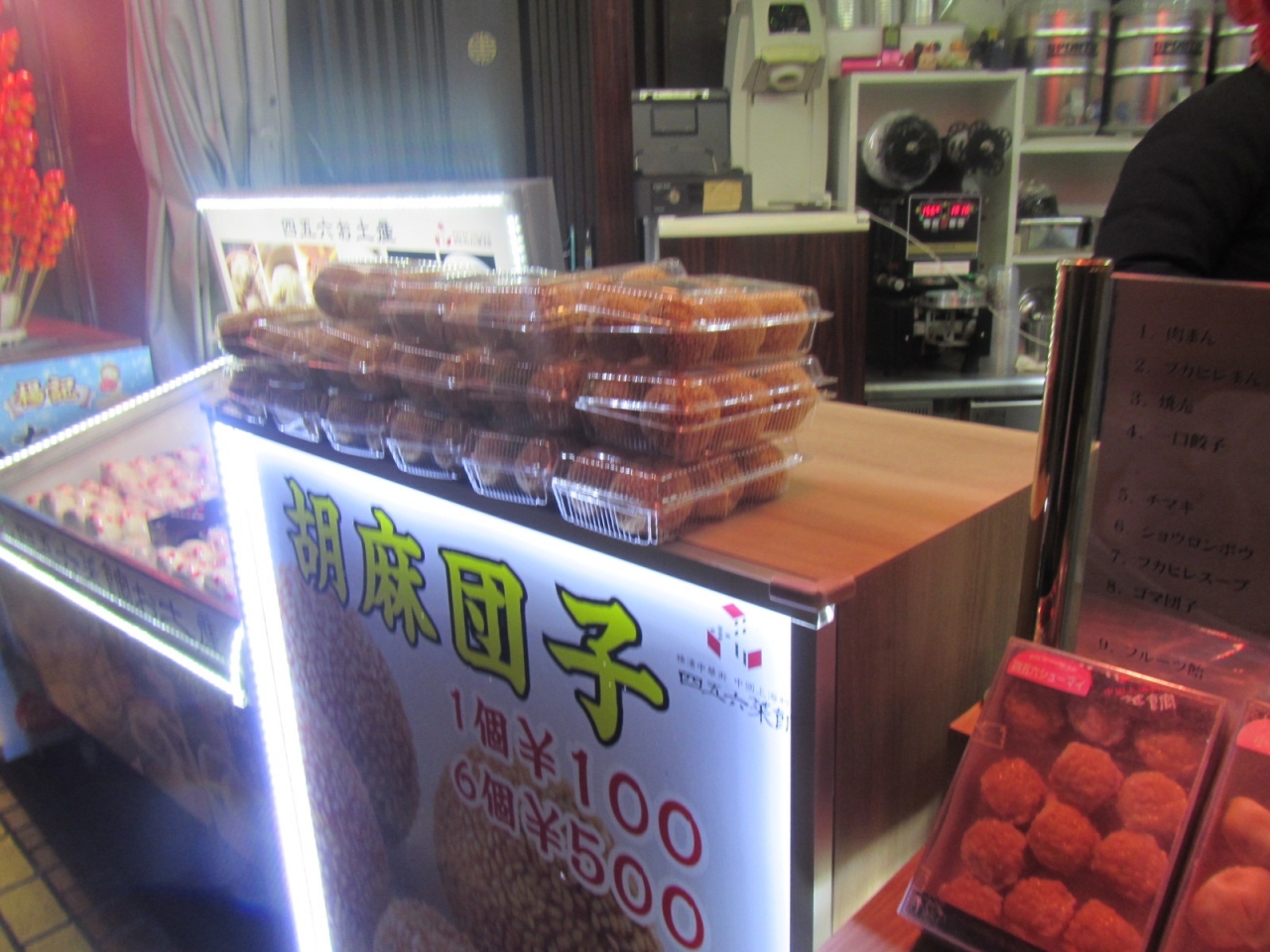 大通りを通っていて、中華まんやシュウマイ、タピオカなどがありましたが、こちらでは胡麻団子を店頭販売していたので購入しました。