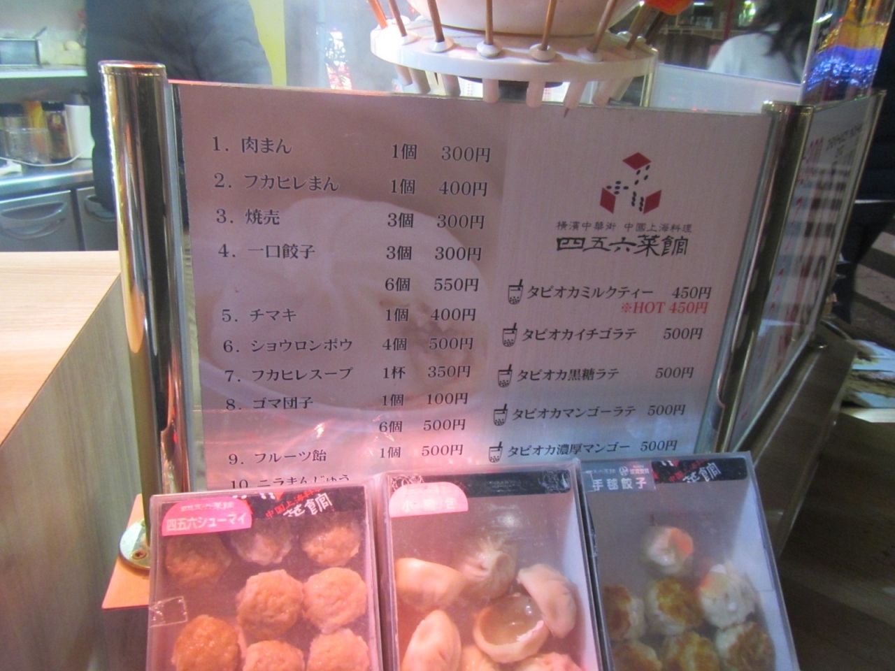 勿論、こちらのお店でも肉まんや小籠包、シュウマイや餃子、タピオカも数種類、店頭販売していました。