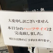 『本日分のハーフサイズは完売致しました』 と書かれていました。