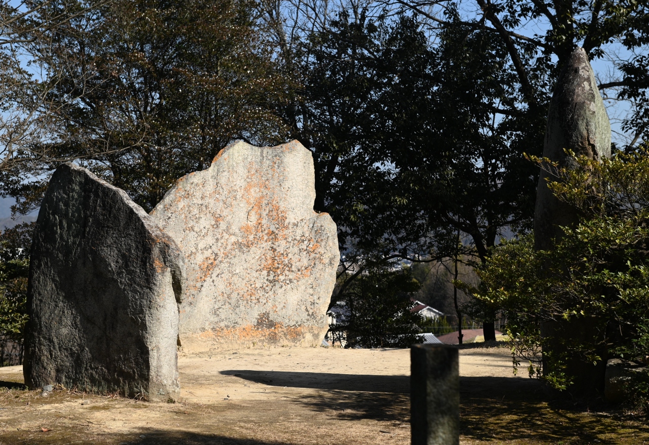 全国4位の規模を有する造山古墳や作山古墳など吉備勢力が残した古墳が集中するエリアにある。弥生時代後期と推測される墳丘墓だけに、のちに大規模な古墳を築造する勢力の先祖がこの墳丘墓を造ったことは想像に難くない。国重文で現地の倉庫に保管されている「施帯文石」は見ることができないものの、墳丘墓の上に点在するストーンサークルだけでも足を運ぶ価値がある。団地造成で大きく破壊されたが、この場所だけでも残ったのは大いなる幸運だ。当地には大和朝廷から派遣された吉備津彦命が温羅と戦う「温羅伝説」があり、ストーンサークルは盾代わりだったとの言い伝えがある。現地に立つと、呪術性を帯びた石の配置に想像力をかき立てられる。何かの祭祀か、星占いで吉兆を案じたのか。古代ロマンあふれる場所だ。