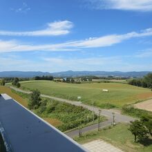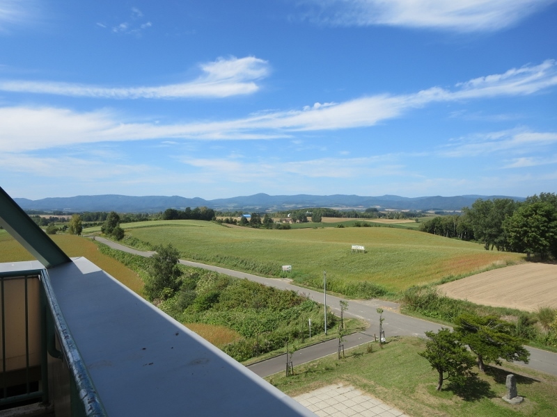 かなり広い場所で、観光案内所、写真展示館、土産物屋などがあり、ひと休みできます。展望台に登ると、ぐるりと美瑛の町並みや十勝連峰を見渡すことができました。サイクリングをしながら来たので、少し息があがってしまい、景色を眺めながら一休みしました。