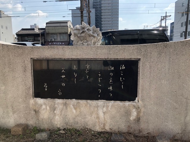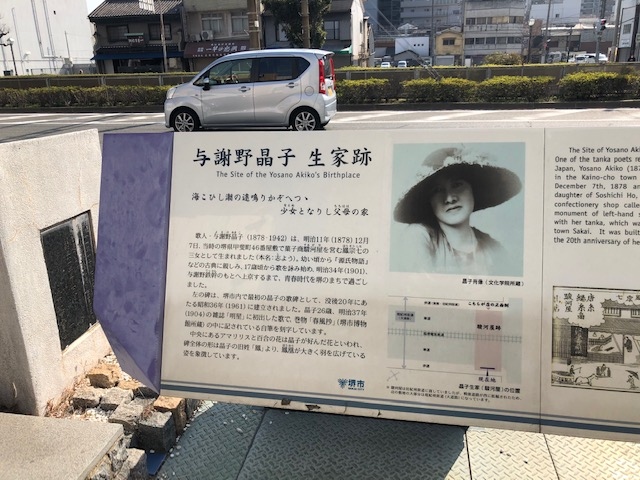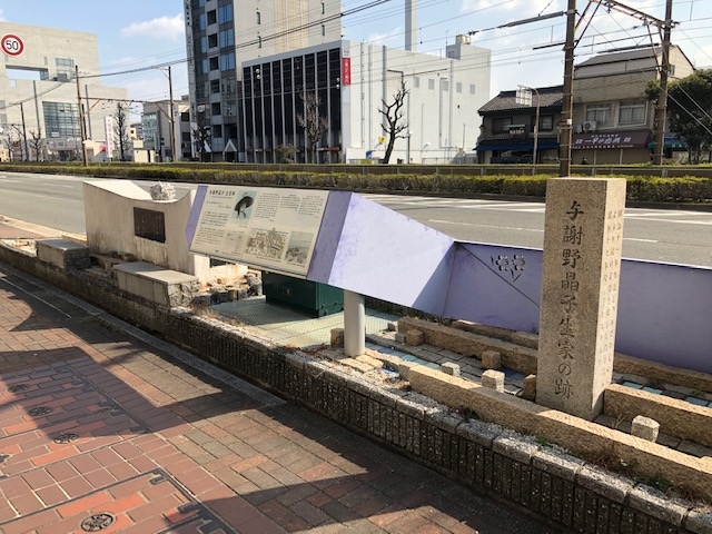 大道筋に面して与謝野晶子の生家跡の石碑が