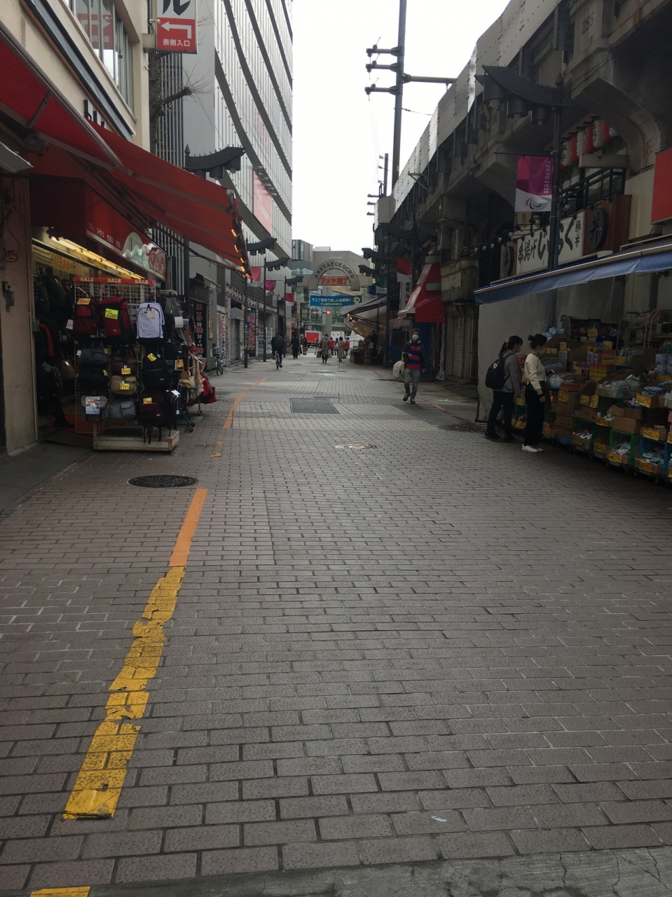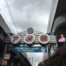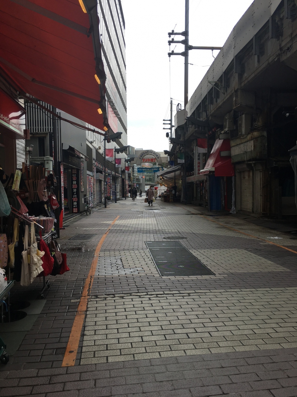歩いていると控えめですが威勢の良い声が飛び交っていました。どの商品も安そうに見えて雰囲気が良かったです。横はJR線の高架で、その下にも小さな店がびっしりとあり、独特の雰囲気でした。飲食店も多く屋台風の店があります。