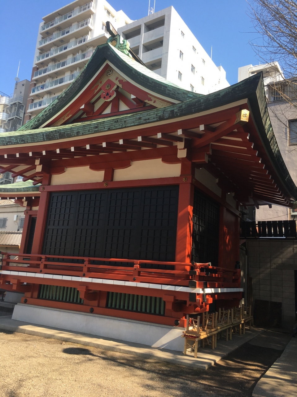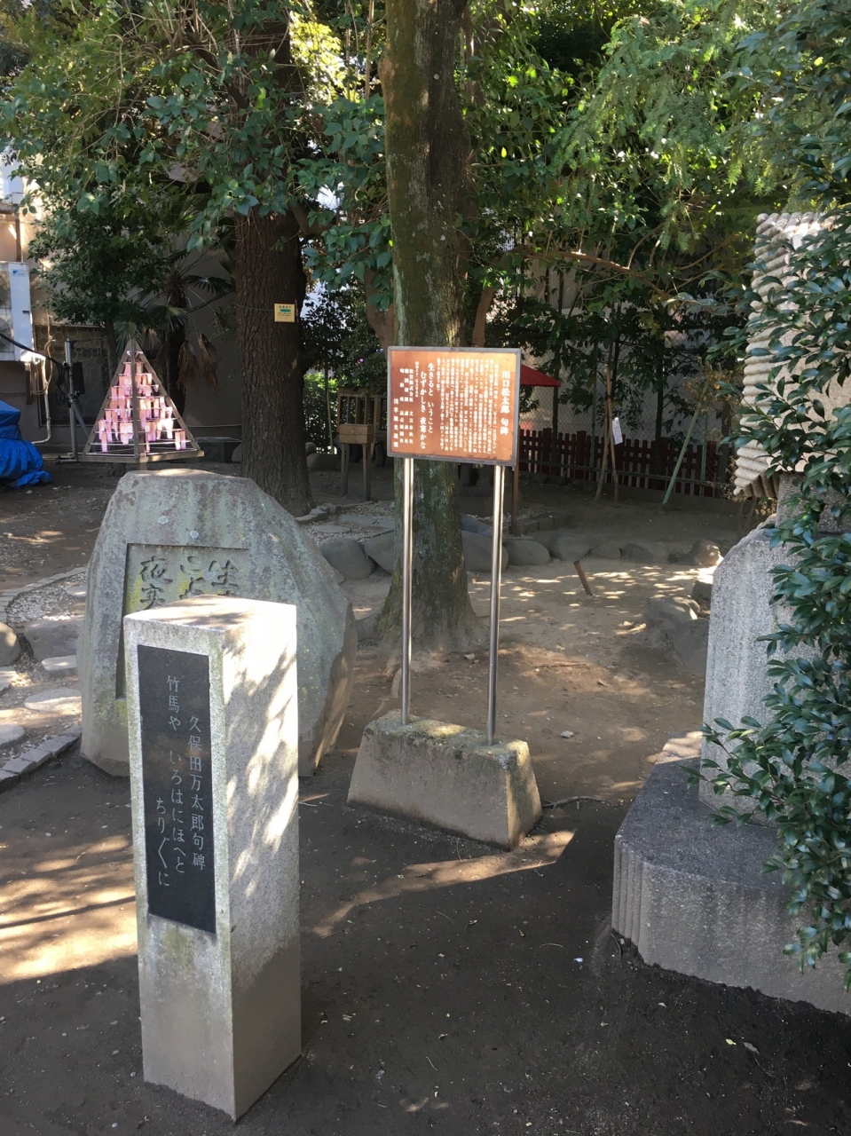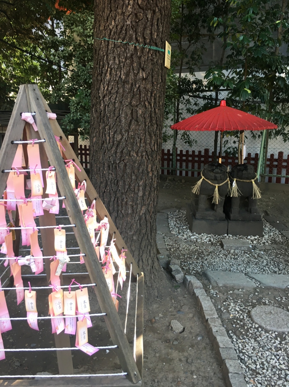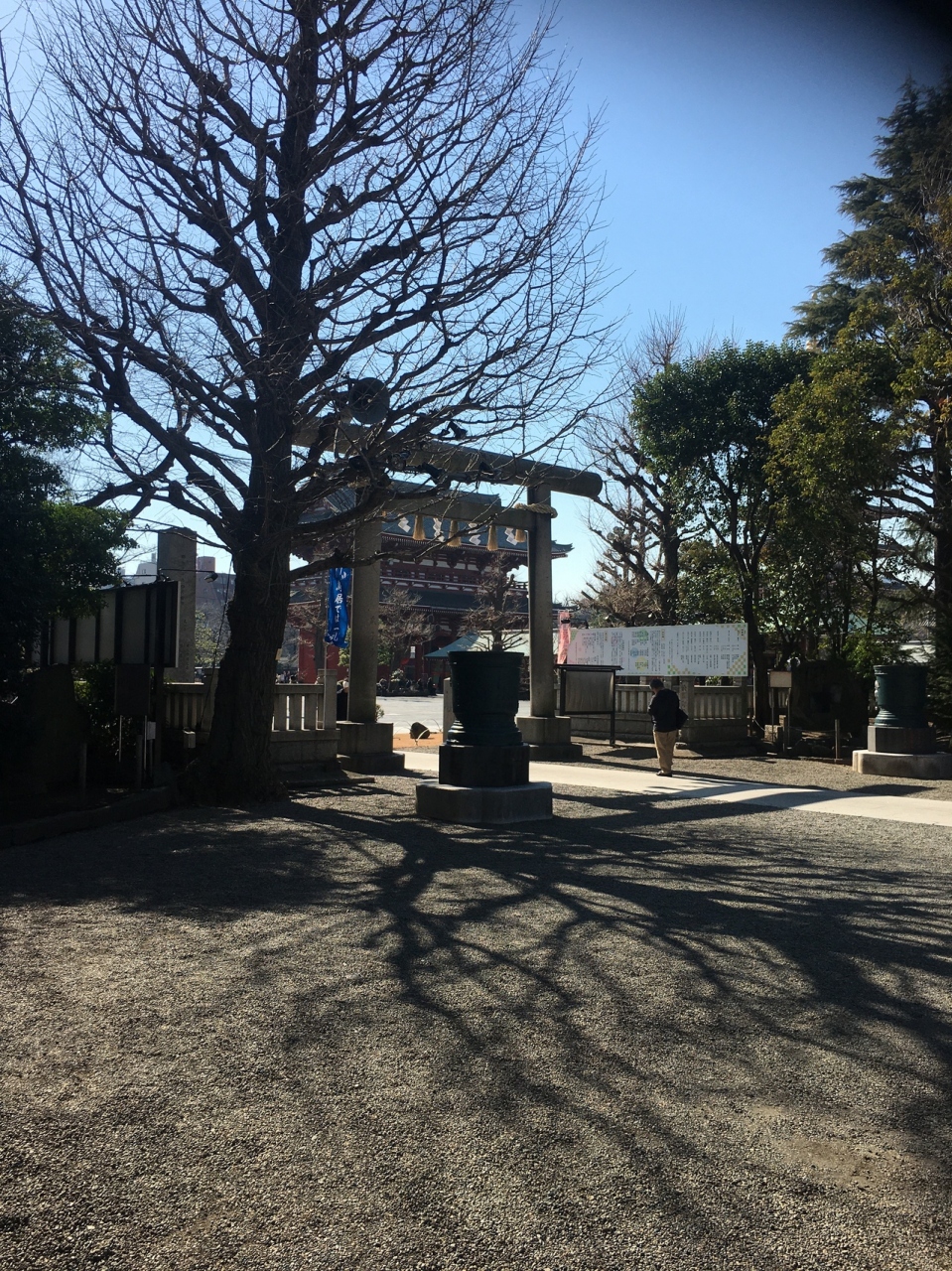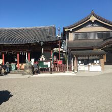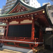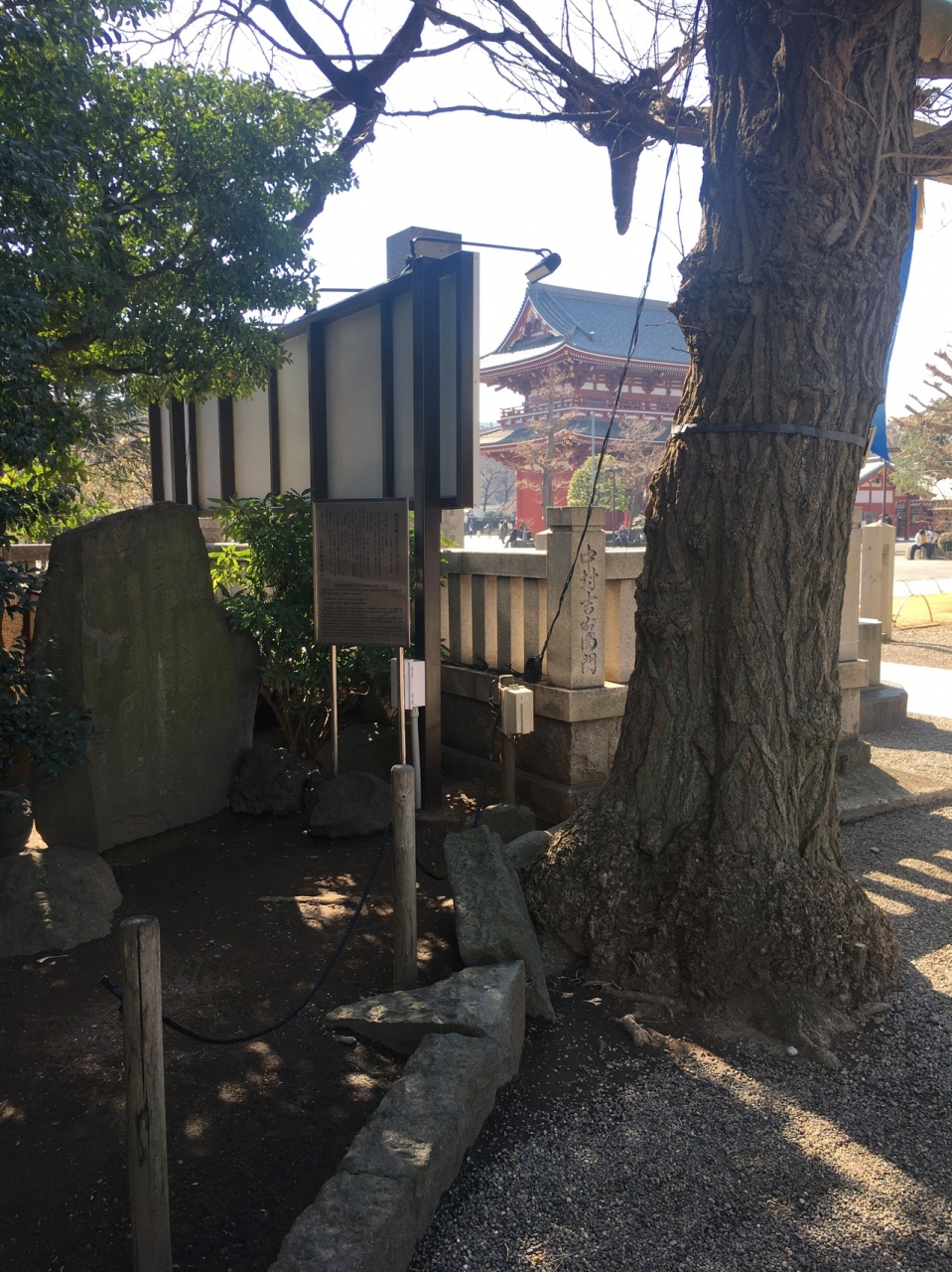 浅草寺に隣接した神社で、浅草寺本堂とニ天門の真横にあります。石碑等の小物が多く展示されていました。赤い社殿で参拝客が絶えず、並んでいると狛犬像が睨みつけているのが目に入りました。出入口がいくつかある境内です。