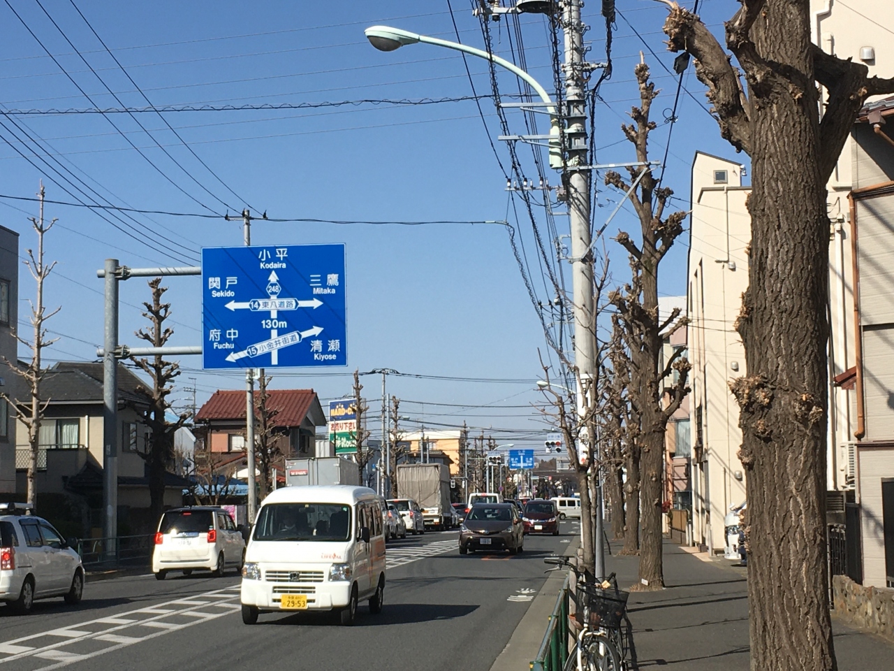 清瀬と府中を結ぶ都道15号線の通称で、主に小金井市内を南北に縦断しています。並行して小平と府中を結ぶ新小金井街道がありますが、小金井市の前原交番西で交差しており、ちょっとややこしい位置関係になっています。