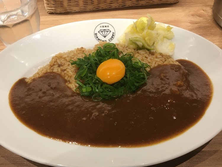 飛行機の出発前に小腹が空いたのでカレーでも食べていこう、ということになりました。ここを通りかかったのは2回めで、前回は「空港値段で高め」という印象でしたが、じっくりサンプルを見たらそこまで極端なことはありませんでした。で、「まぜカレー」をオーダー。確か浪速の洋食メニューでこのパターンを大昔に食べた記憶があったのですが、飲める系?で「小腹を満たす」目的にはぴったり、でした。