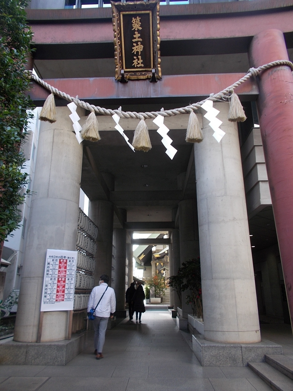 この築土神社は地下鉄の3線がかさなる九段下駅から西のすぐの場所にあります。坂を少し上ったところです。ビルの奥にあるのです。鳥居があるので神社がわかります。この神社は平将門の首が安置されていとという神社です。第二次世界大戦で焼失しています。魅力的な社殿が再建されています。