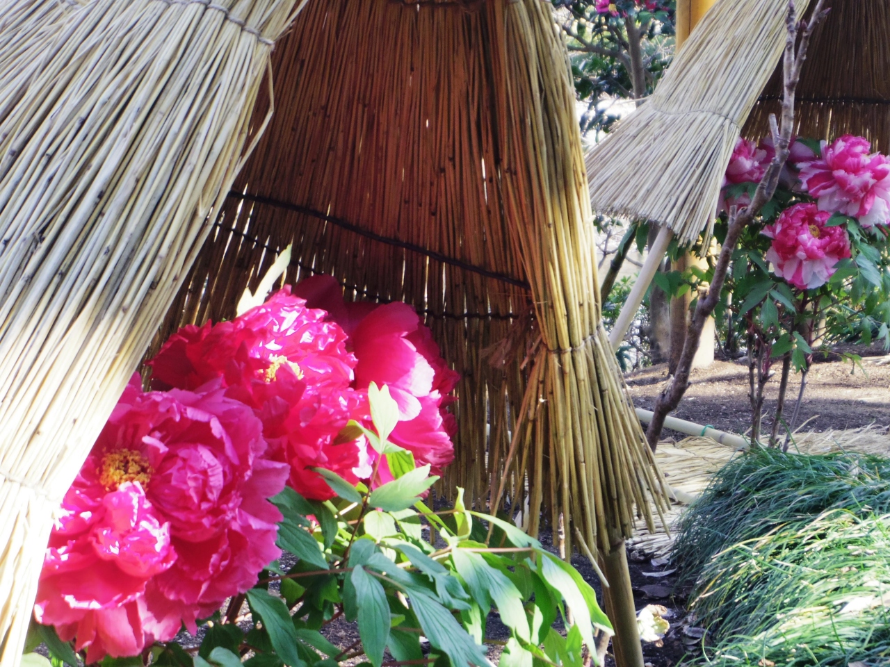 正月ぼたんが楽しめる鶴岡八幡宮のぼたん庭園