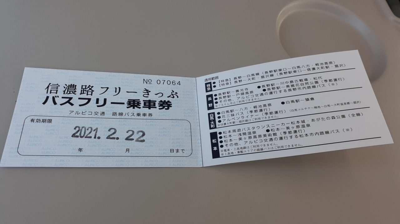 長野県のうち長野市内・松本市内・白馬村・大町市内等で路線バスを運行している事業者で、2021年2月20日の土曜日と2021年2月21日の日曜日に利用しました。