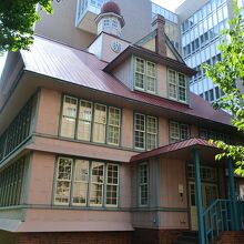 藤学園の敷地内に建つ建物です。藤高等女学校時代の建物の一部を再現したもので、現在は資料館になっているそうですが、訪問日は閉まっていました。再建とはいえ、タマネギ坊主の塔が印象的。色はピンク?藤学園にちなんで紫?かどうかはちょっと判別しがたかったですが、きれいな色も印象的な建物でした。