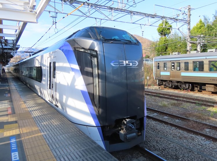 中央東線を経由して東京・新宿から山梨県甲府・竜王を結ぶ特急です。定期運行はE353系。すべてが指定席なのは常磐線で運用されているE657系ひたち・ときわと同じです。空席がある場合は座席未指定のまま乗車することもできます。一部の列車には河口湖行きの「富士回遊」が併結されています。