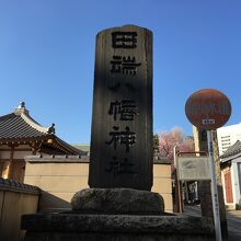 田端駅北口から歩いて10分弱。赤紙仁王で知られた東覚寺の隣にある神社です。歴史のある神社のようで、ずらりとお神輿の倉が並んでいました。細長く続いた参道を通ると、きれいな桜の花が咲いていました。とても静かで落ち着いた雰囲気のある神社です。