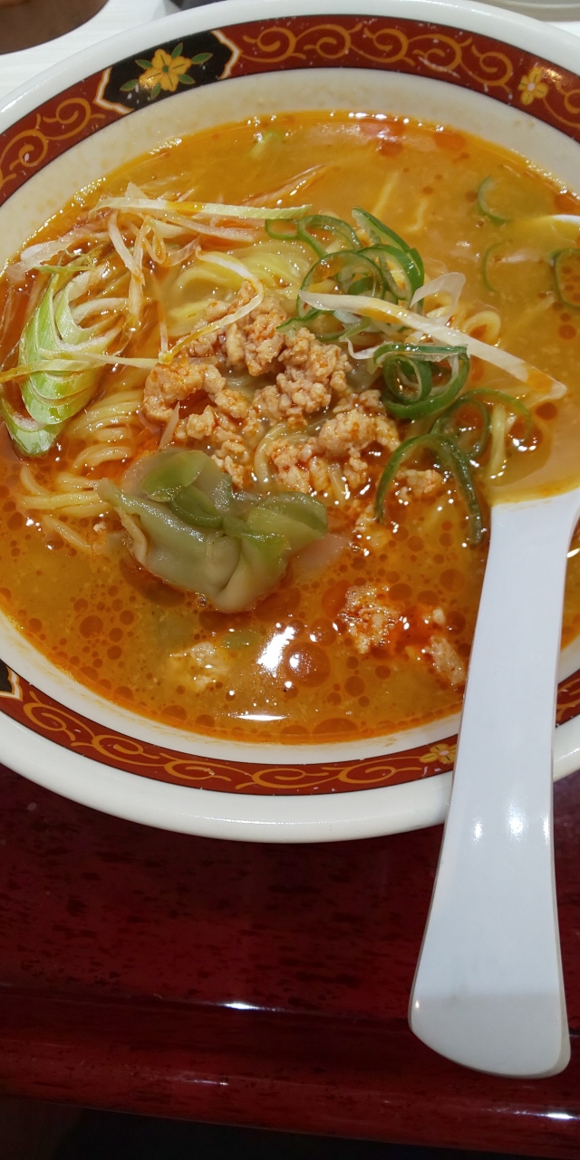 担々麺を食べました。麺はつるつるとしていて、安い割にはそんなに悪い麺ではありません。しっかりひき肉も入ってました。担々麺だから辛いけどにんにくはそこまてま使われてないのだろうと勝手に思い込んでましたが、かなりにんにくは使われてるなと食べてて思いました。その後乗った電車で臭わなかったか心配でした。