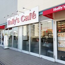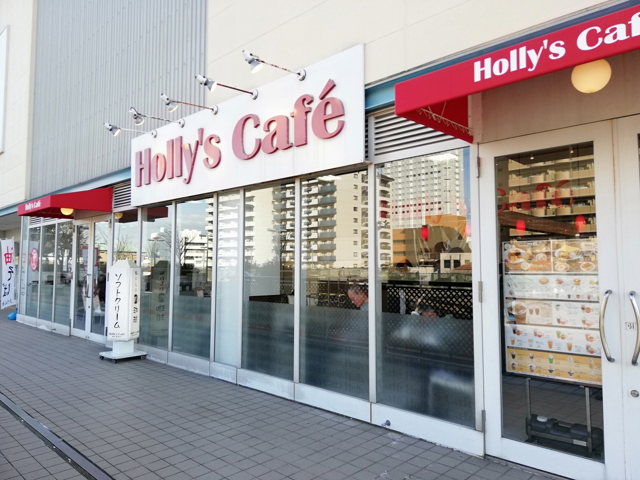 阪神電車の尼崎駅すぐにある商業施設「アマゴッタ」の3階です。駅からもエスカレーターや公園を通ってすぐです。駅から続く高台の公園に直結していて、お店の前の見晴らしがすごく良いです。あとは、普通のホリーズカフェと同じです。お散歩がてらにオススメです。