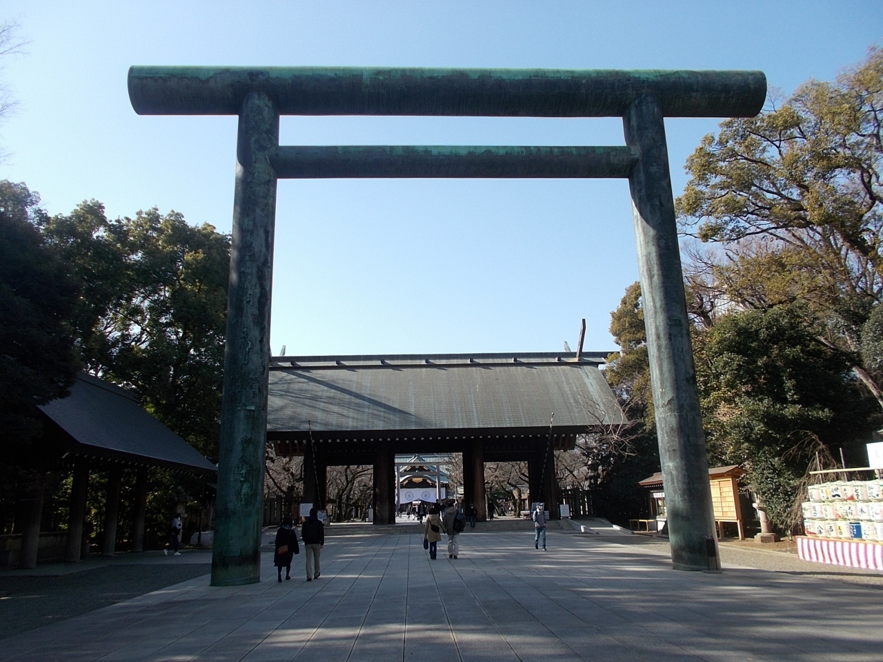 この靖国神社第二鳥居は靖国神社の境内にあります。第一鳥居である大鳥居から拝殿までの中間の辺りにあります。青銅製の鳥居です。大きな鳥居です。鳥居の両側には大きな灯籠が置かれています。その灯籠の彫刻が素晴らしいのです。鳥居の2つの灯籠の景観も魅力的です。