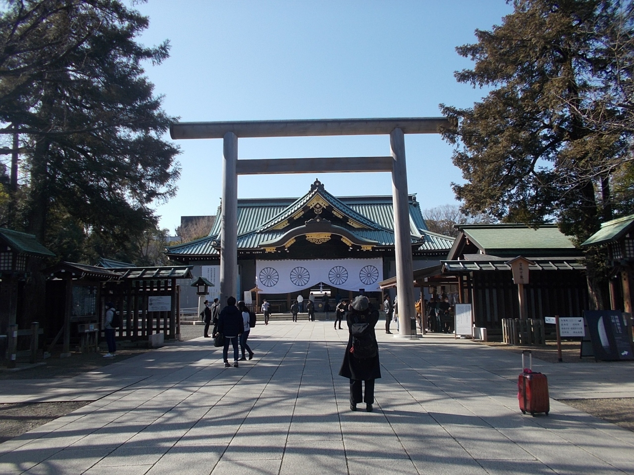 この靖国神社中門鳥居は靖国神社の境内にあります。神門を入ると正面に拝殿が見れます。その拝殿の手前にある鳥居です。第三鳥居ともいえます。この鳥居は木製です。この鳥居も二代目です。平成の中ごろに造営されました。中門は鳥居の両側には塀があるからでしょう。落ちつた素朴なもんです。