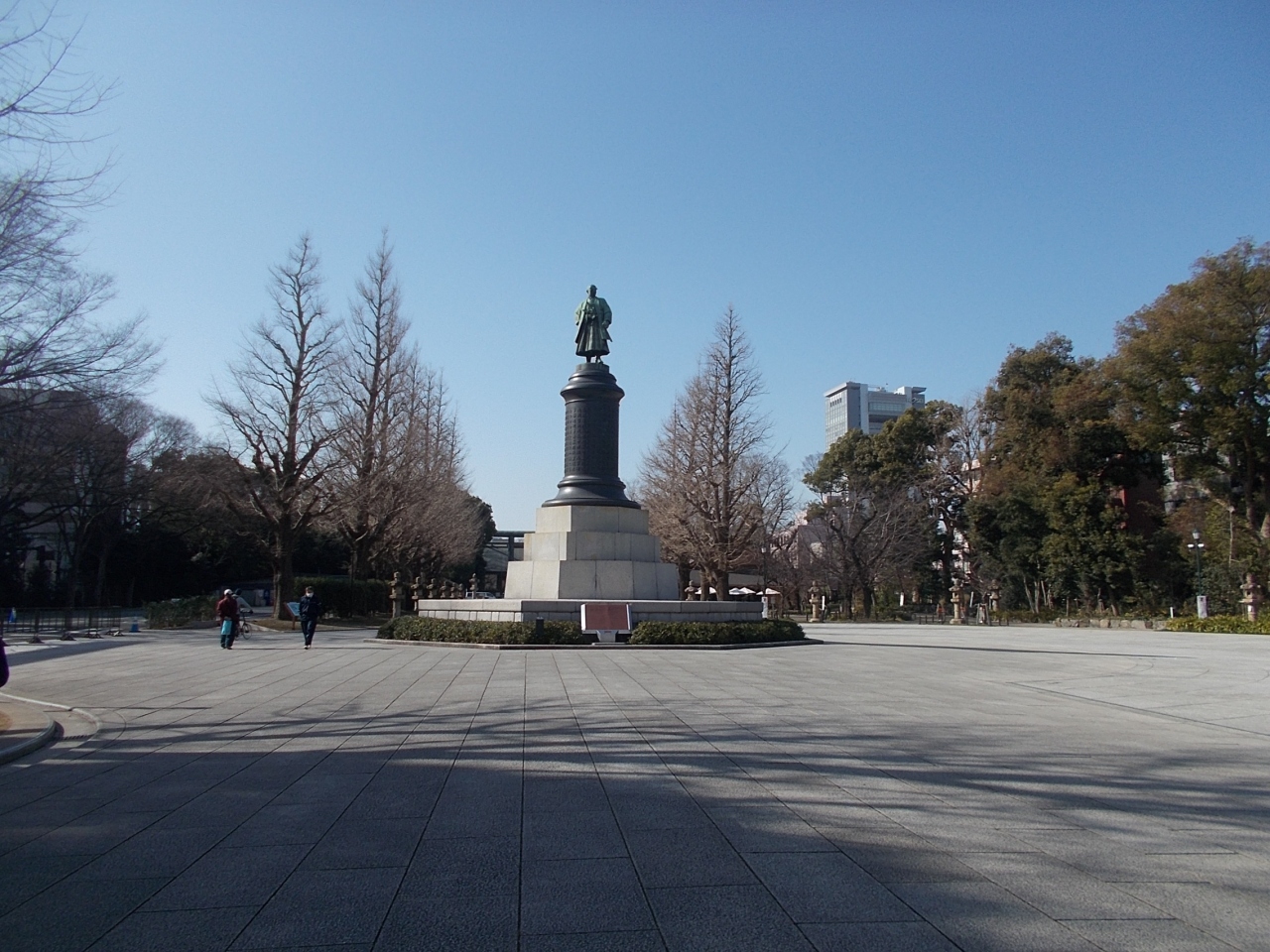 この大村益次郎像は靖国神社の境内にあります。この像は第一鳥居の大通りをくぐり参道をすすむと中央にこの像がたてられています。大村益次郎は幕末から明治にかけた活躍した人物で日本陸軍の創設者ともいわれる人物です。和服の武士の姿の像です。大鳥居の方向を向いています。日本の将来を見つめてきているのです。
