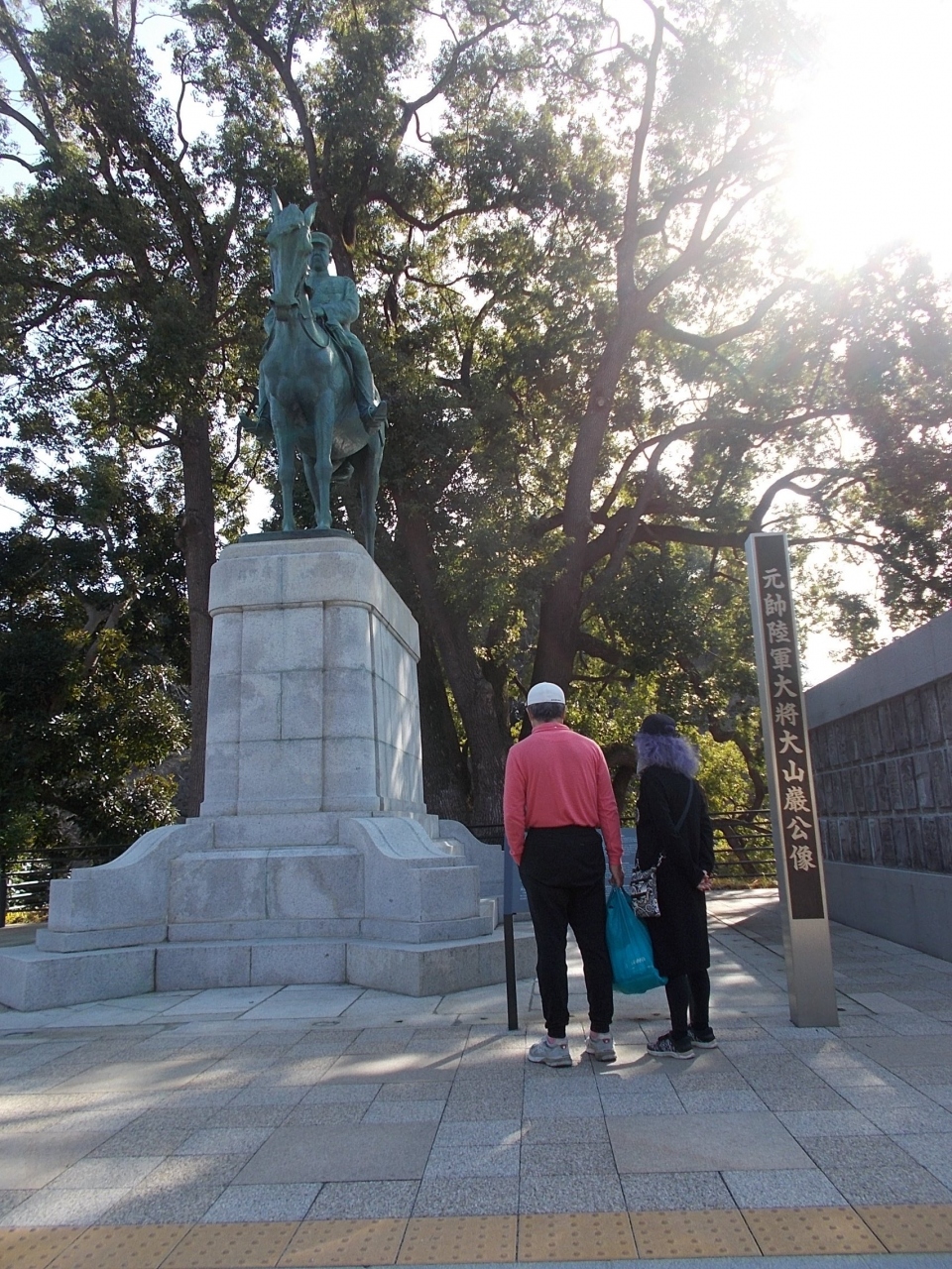 この大山巌像は九段坂公園の中にあります。地下鉄3線がかさなる九段下駅から西に5分弱程度の場所です。隣には品川弥次郎公の像もあります。この青銅の騎馬像は靖国神社を見つめているようにたてられています。大山巌は幕末から明治の時代に活躍した人物です。日本陸軍を強固にしています。