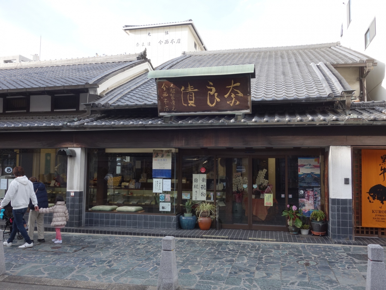 三条通の古い家も少なくなりました。唯一といってもいい残っている家屋で商売をしているのがここ今西本店。元祖奈良漬のお店です。奈良漬のかうのなら,ゼッタイここです。ここを外しては,奈良漬は語れません。でも,お店の前と通るだけで,アルコールのにおいで酔っぱらった,などとは言わないでください。