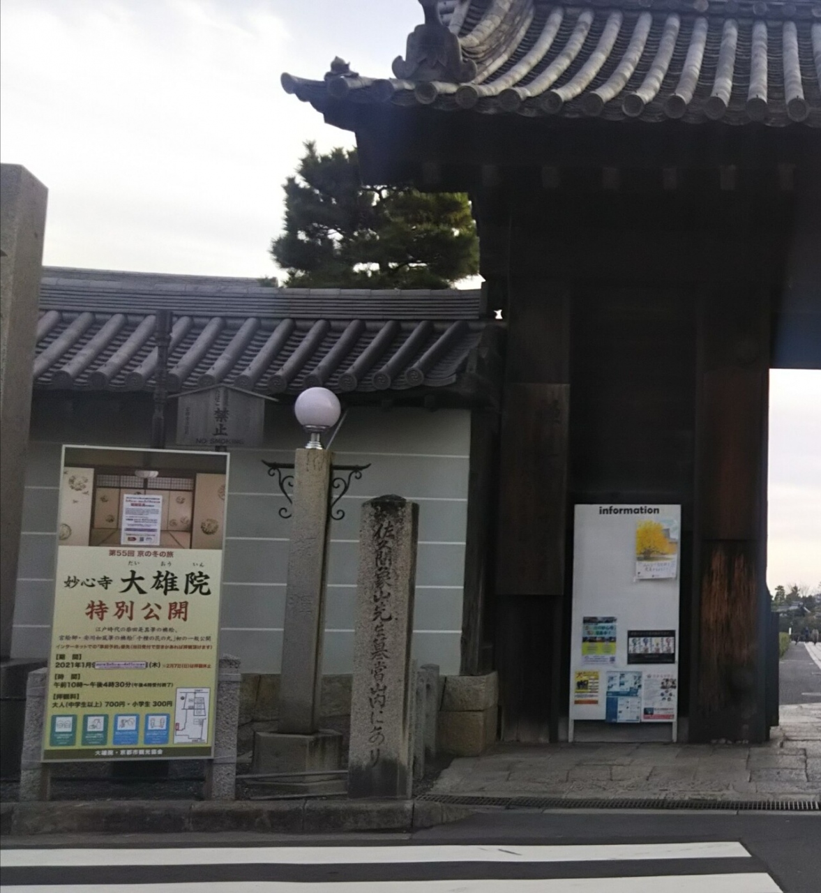 3月5日から冬の特別拝観開始するみたい。で4月11日まで延長になったよ。大雄院っていうのが公開されるらしい。しかも襖絵の「千種の花の丸」が初の一般公開になんだって。自分はこれ妙心寺の北側からとったけど、南側からも入れて通り抜けていく人もいるね。