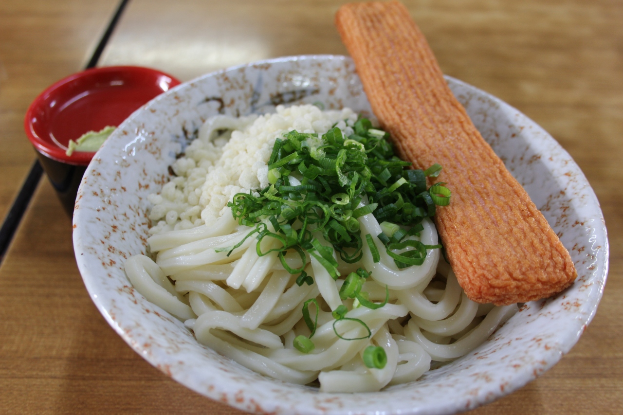 コトデンの仏生山駅から徒歩すぐの地元製麺所のうどん屋です。外観店内は製麺所そのものの雰囲気です。メニューもシンプル、うどんの量は小、大、特大の3種類です。讃岐のうどん屋そのものの世界が広がってました。