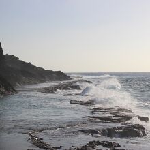 海が美しく見えるところです。プールへの波が大荒れでした。