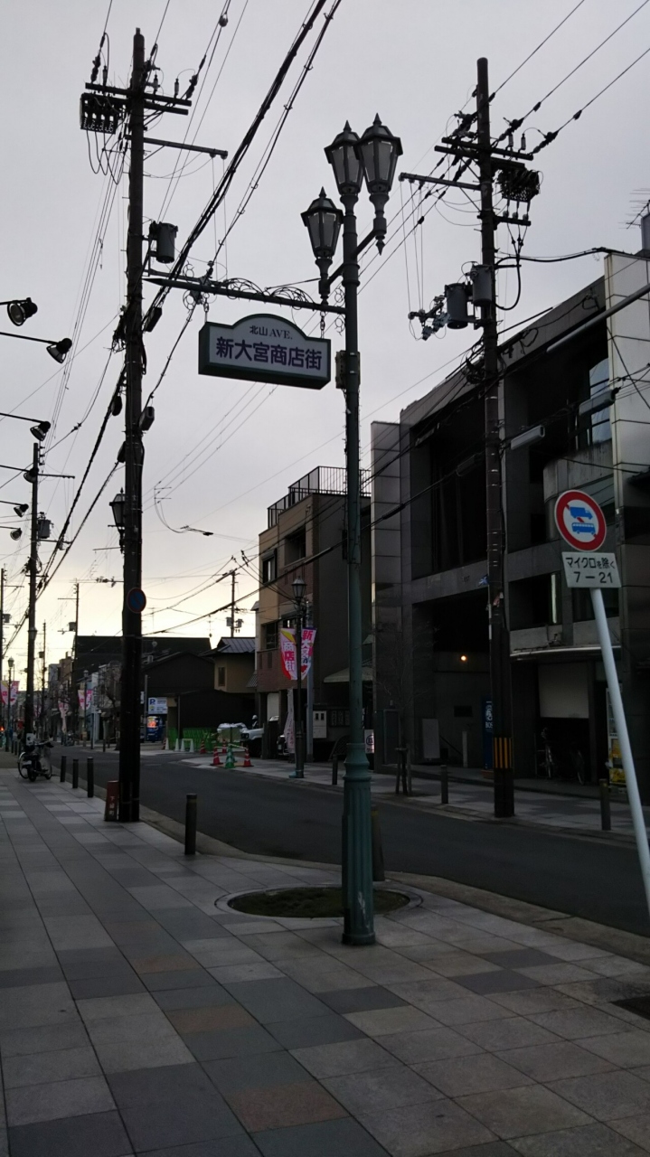 北山大宮を通ったときに見つけた。ここをずっと下って行ったのだけど、結構長い商店街だね。北大路あたりまで続いてたよ。アーケードとかはないけど。普通に車道を挟んでる両方の歩道側にお店が色々並んでた。地元のひとが利用しそうなところだね