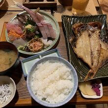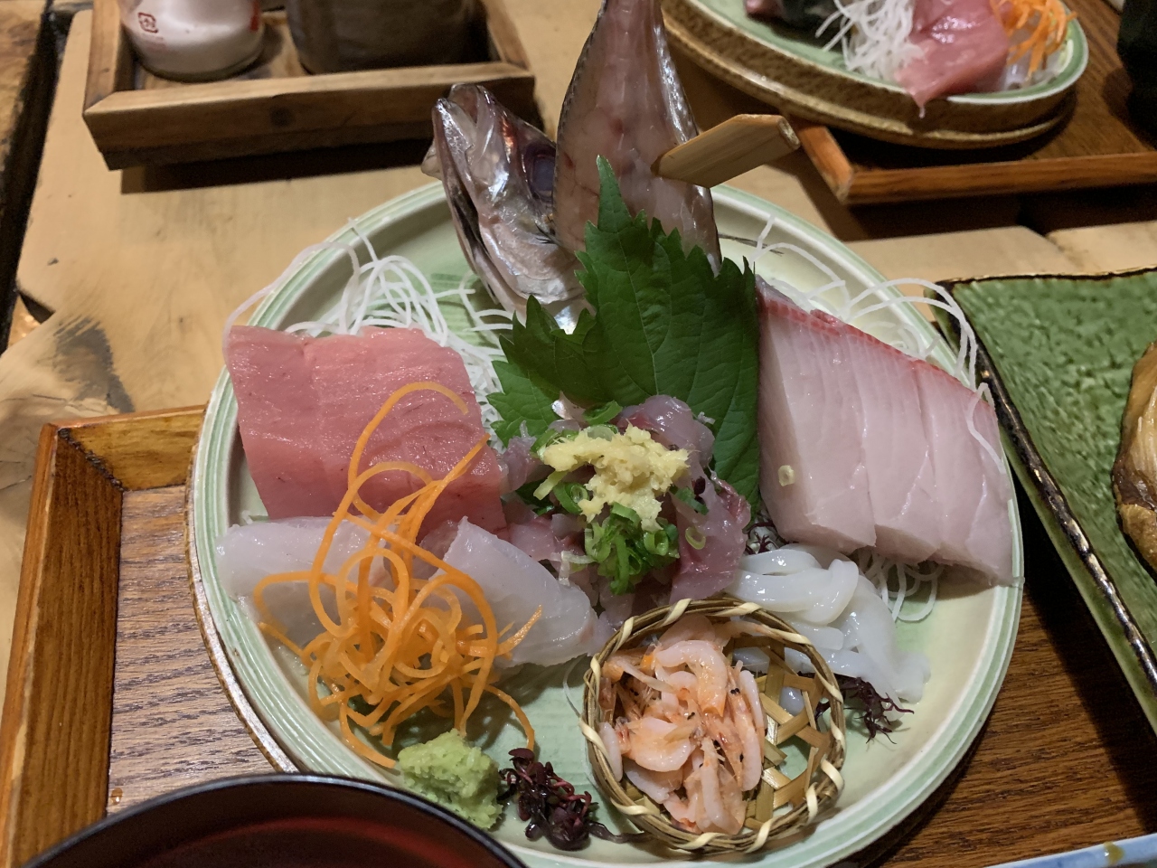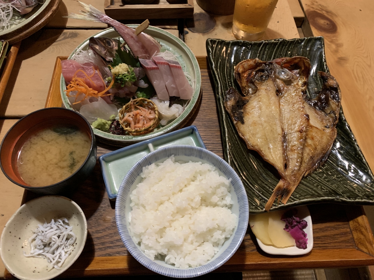 ゴルフの前泊で熱海駅近辺に宿泊したので、熱海なら魚がおいしい店へ...ということでチョイス。閉店時間が近く定食のみということで、焼き魚と刺身の定食にしました。三千円近くと割といい値がしますが、刺身は肉厚でボリュームがあり、焼き魚も脂がのって美味かったです。