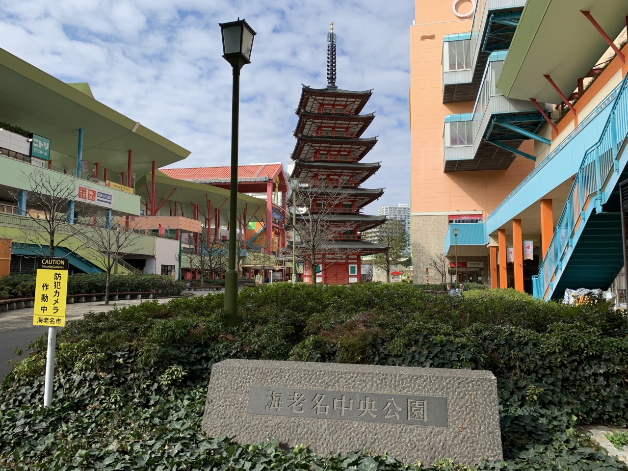 海老名のビナウォーク中心部分にある五重塔とその周辺の広場は海老名中央公園とされています。