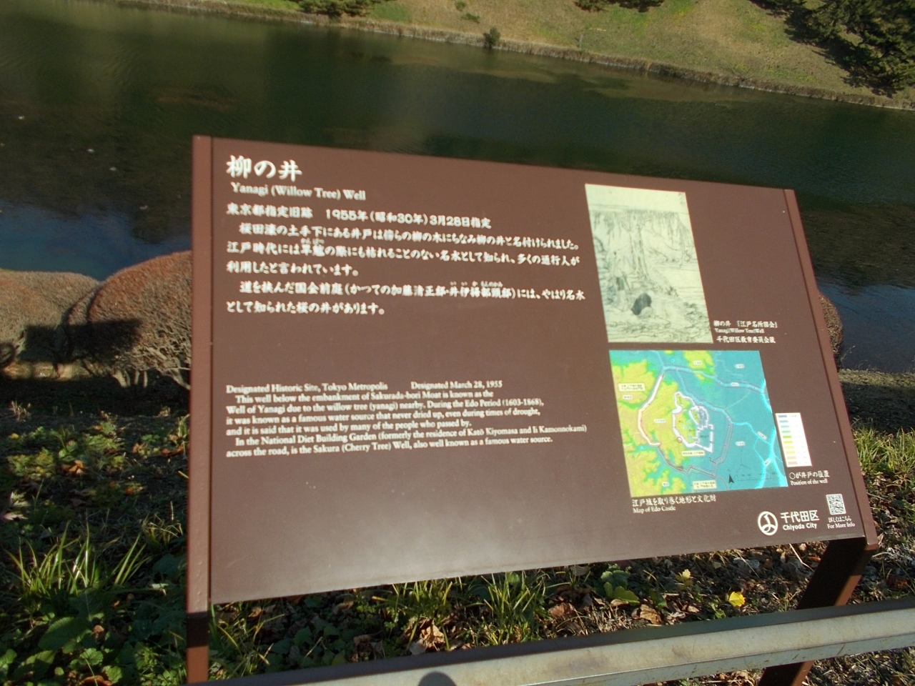 この柳の井戸は江戸城内堀の西側にある桜田豪沿いにある井戸です。江戸時代から枯れたことがない井戸として知られてようです。地下鉄東京メトロ半蔵門線半蔵門駅から南東に15分程度の場所にあります。今は井戸の近くには行けません。その近くに説明板がたてられています。
