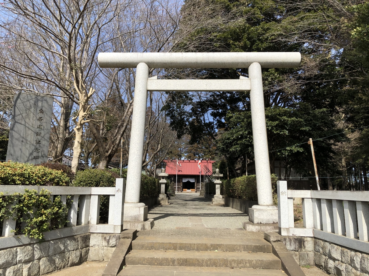 片側2車線の大通り、宇都母知神社入口から100mほど中に入ったところにある神社です。相模の国に13ある延喜式内社のひとつで、平安時代にはすでにあったとされています。大通りの神社入口側から入ると神社の裏手に出て、鳥居や参道は反対側にあります。100ほどの立派な参道があります。