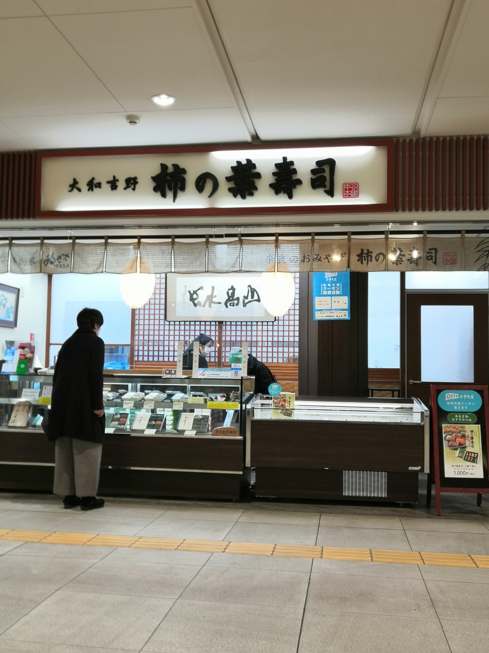 近鉄奈良駅にあります。改札の外ですが、なぜか2か所にあります。食べ比べで別店舗とこちらで柿の葉寿司を購入しました。個人的にはこちらの方が好みでしたが、味覚は個人差大きいのでやっぱり自分で比較しないと難しいですよね。