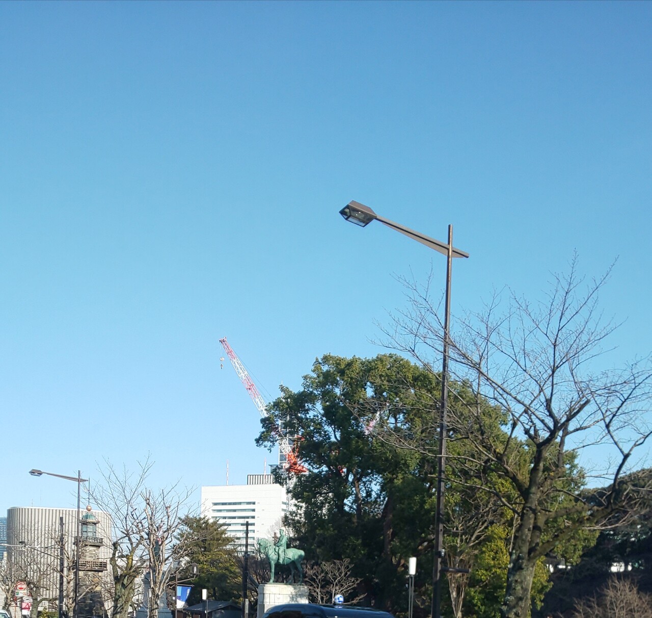 高灯籠は明治時代にたてられたもので、歴史を物語る古いデザインとフォルム。皇居や靖国神社のあるこの土地の雰囲気にもとても合っているなと思います。