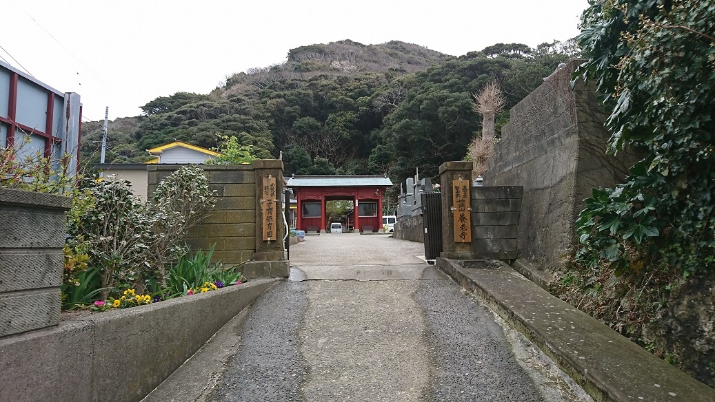 館山市の洲崎神社近くにある真言宗寺院です。養老元年(717年)の創建と伝えられています。曲亭馬琴の長編小説・南総里見八犬伝の舞台として有名な寺院ですが、寺院の境内に保育園が併設されていて、境内には子供用の遊具が並び、不思議な光景でした。