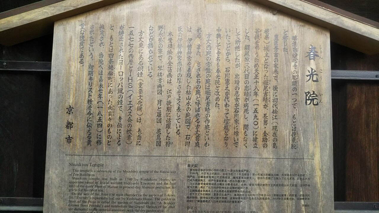 北門からまっすぐ進んで左手にある。ちょうど麟祥院ってとこの向かい側あたり。柵があったから中は見れなかったんだけどね。駒札によれば、ここにある鐘(重要文化財)がイエズス会の紋章があるヨーロッパ風でもともとは四条の南蛮寺ってとこにあったものらしい。初期キリスト教をつたえるものとして貴重なものみたいだね