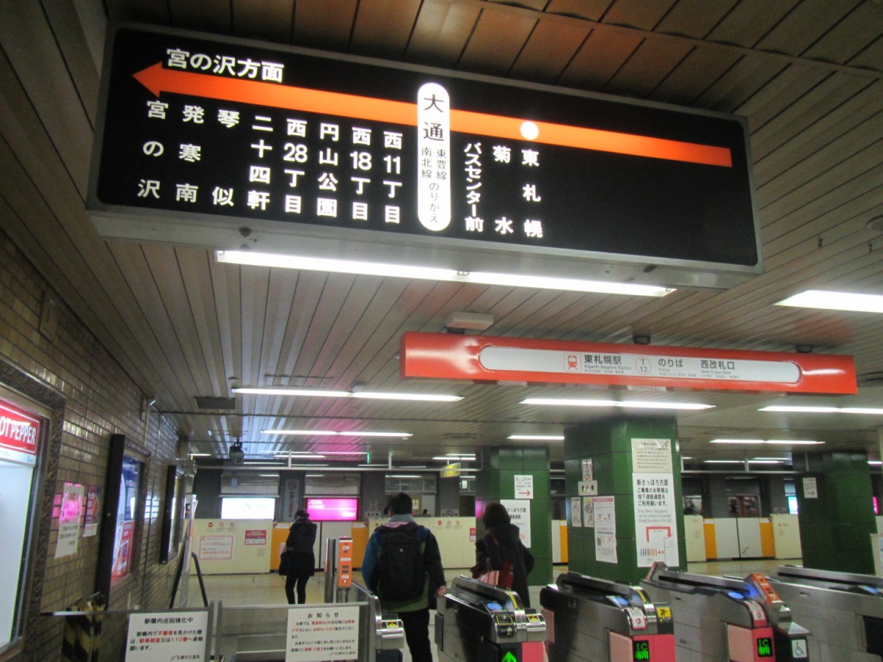 JRの札幌駅へは、大通駅で地下鉄南北線に乗り換えて1駅ですが、南北線のさっぽろ駅がJRとの乗り換えに少し離れているほか、大通駅と札幌駅間には地下歩行空間”チカホ”が通じていて、900mほどを雨などに濡れずに歩いて移動できます。