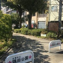 隅田川沿いに沿った公園で広い敷地でした。川沿いでランニングしている人が結構いました。園内は遊歩道になっていて野球場や大きなスポーツセンター、プール等もありました。花や草木も植わり散歩するには良い場所でした。常に東京スカイツリーが近くに見えます。